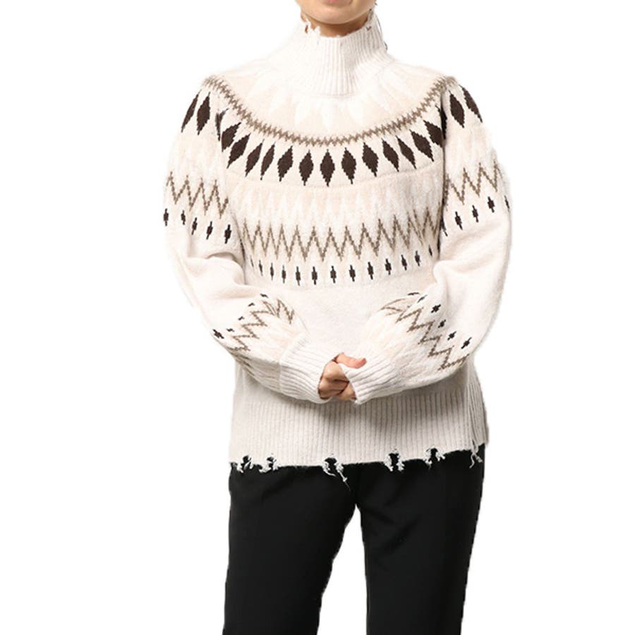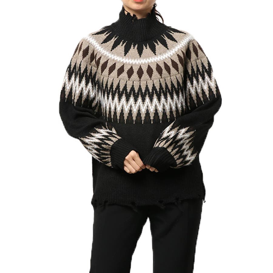 求心柄がおしゃれなハイネックニットプルオーバー。