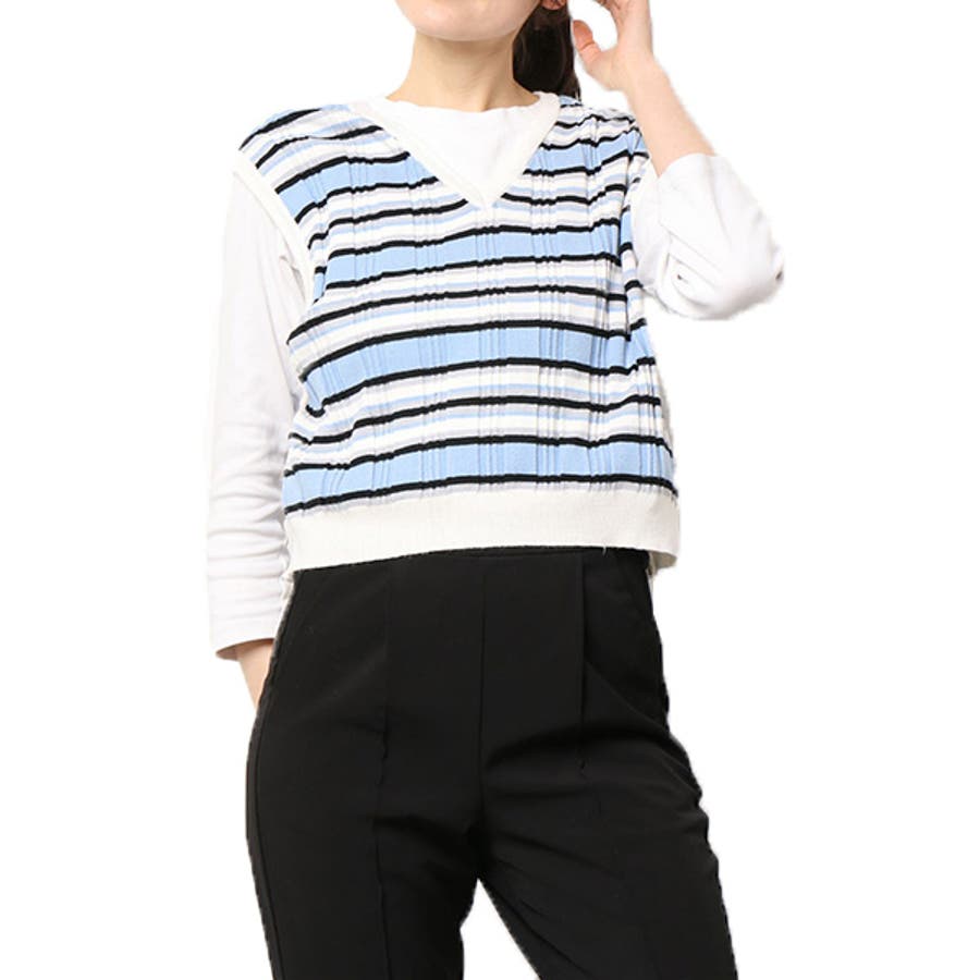 マルチボーダー柄が目を引く2WAYショートニットベスト。