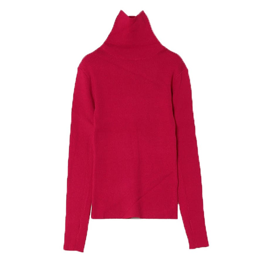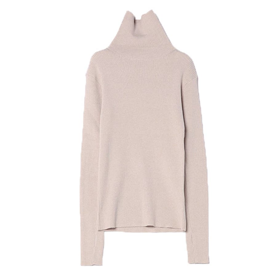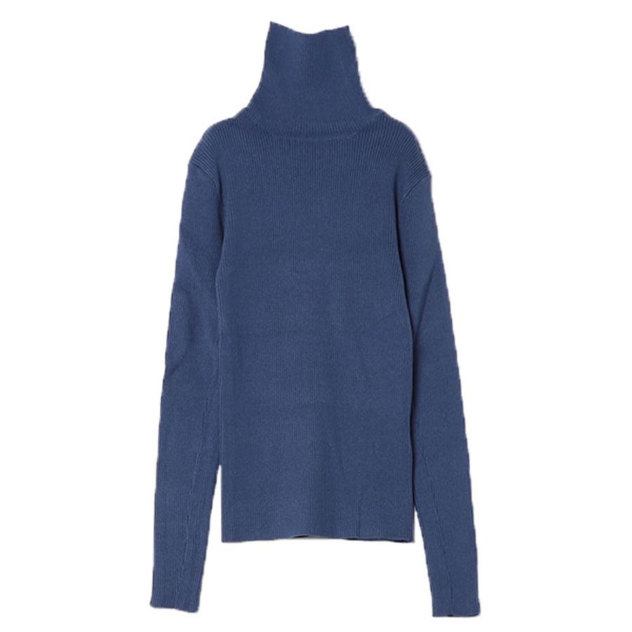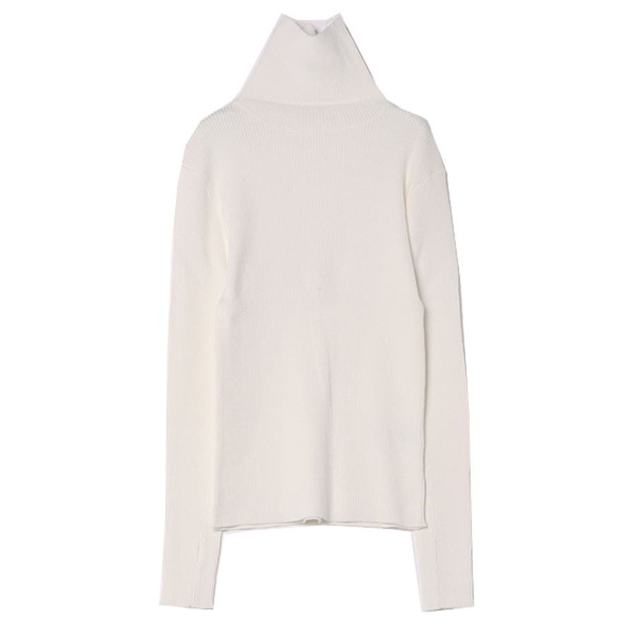 フィンガーホールがおしゃれなタートルネックリブニット。