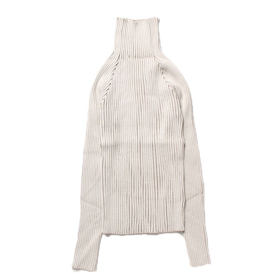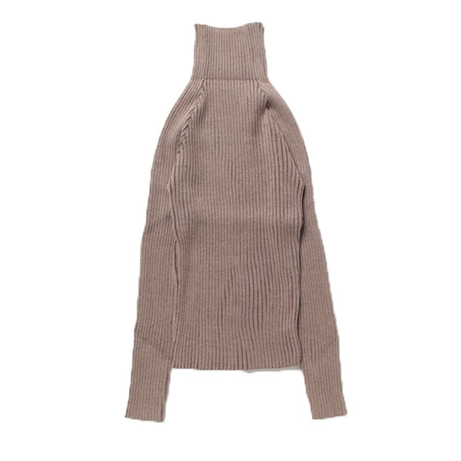 プレーティングリブニットの素材感も魅力のシームレスタートル。