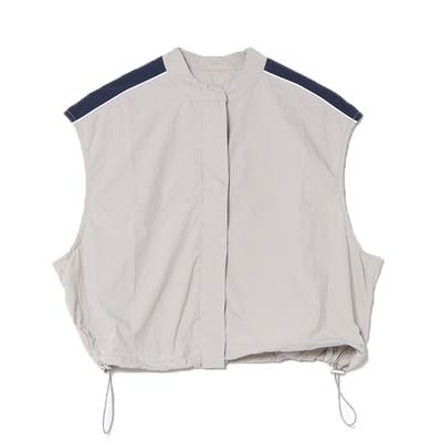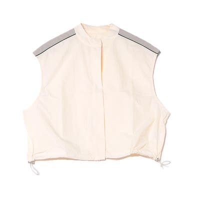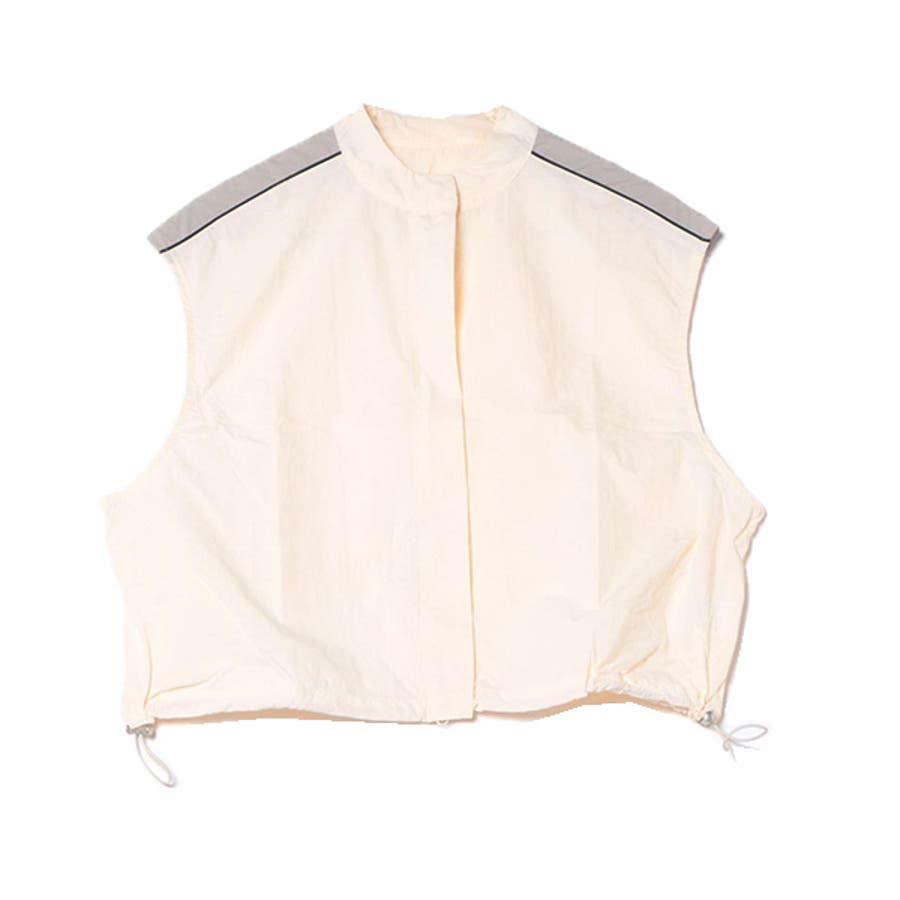 タフタの素材感が魅力の配色ラインノースリブラウス☆!