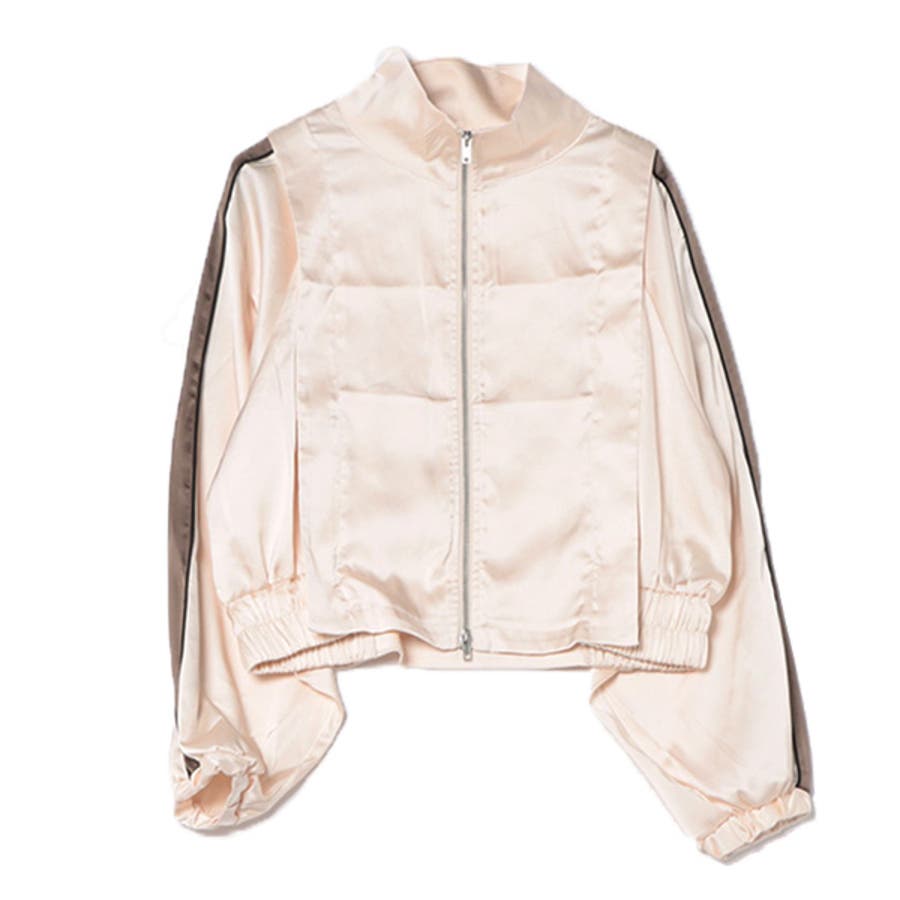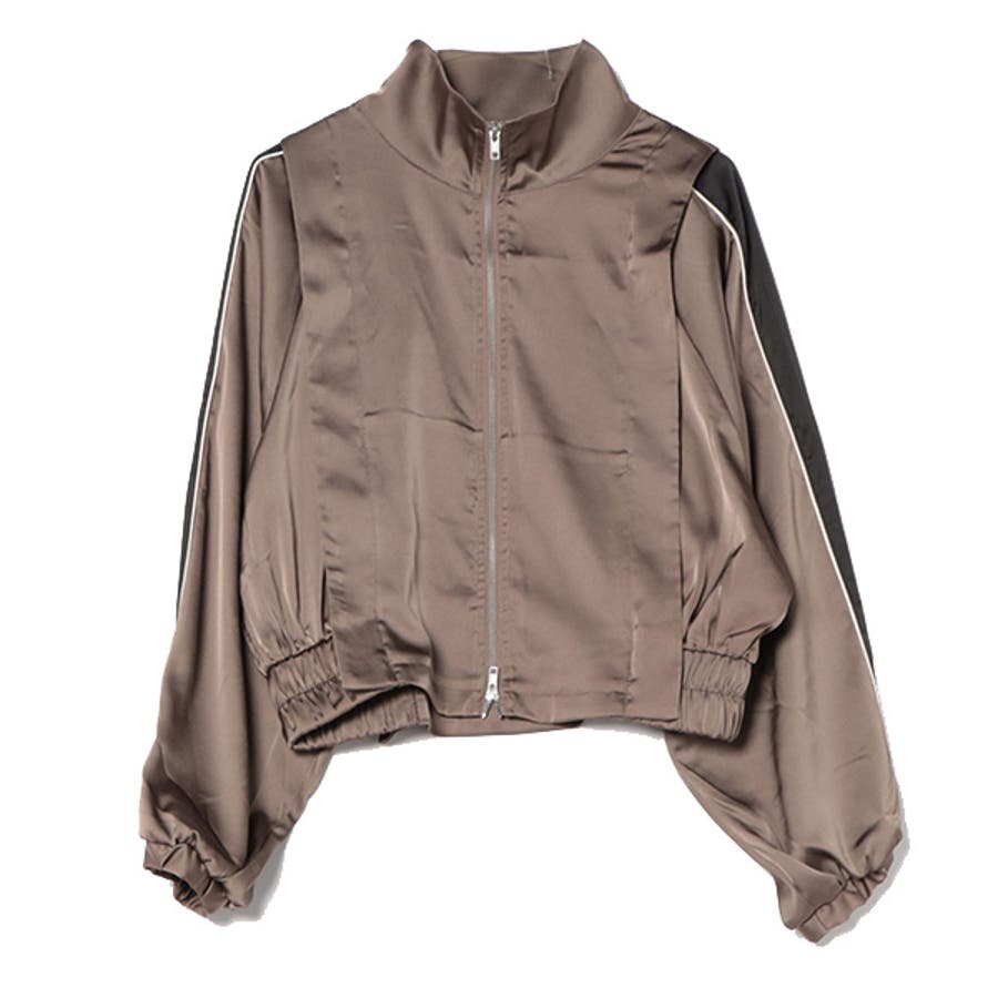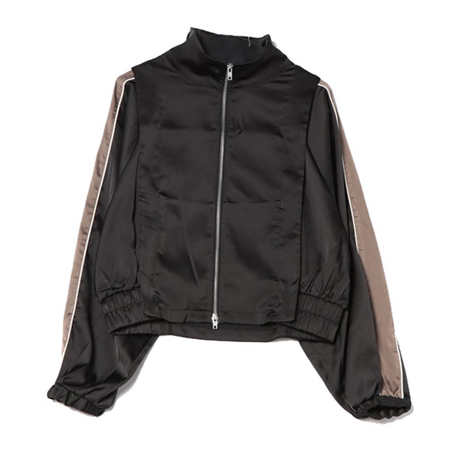 マットサテンの素材感が魅力の配色ラインスリーブトラックジャケット。