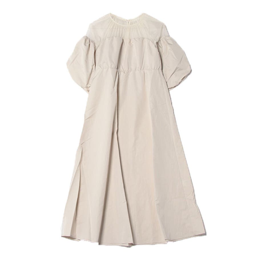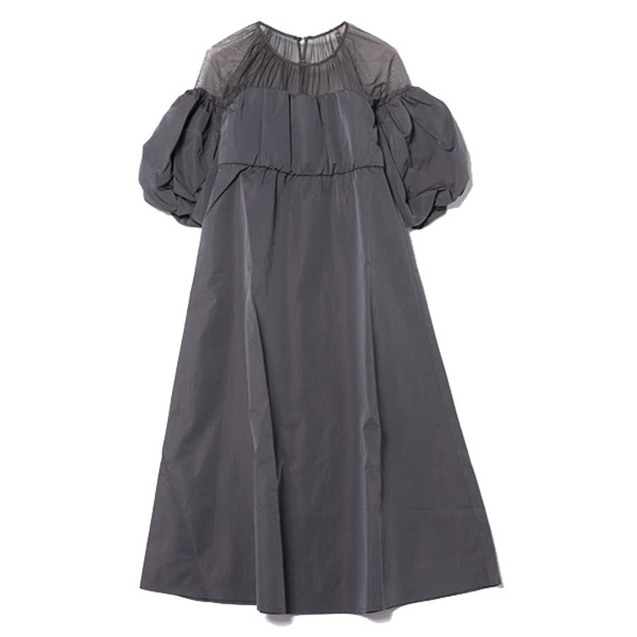 タフタxチュールの素材感が魅力のドッキングワンピース。