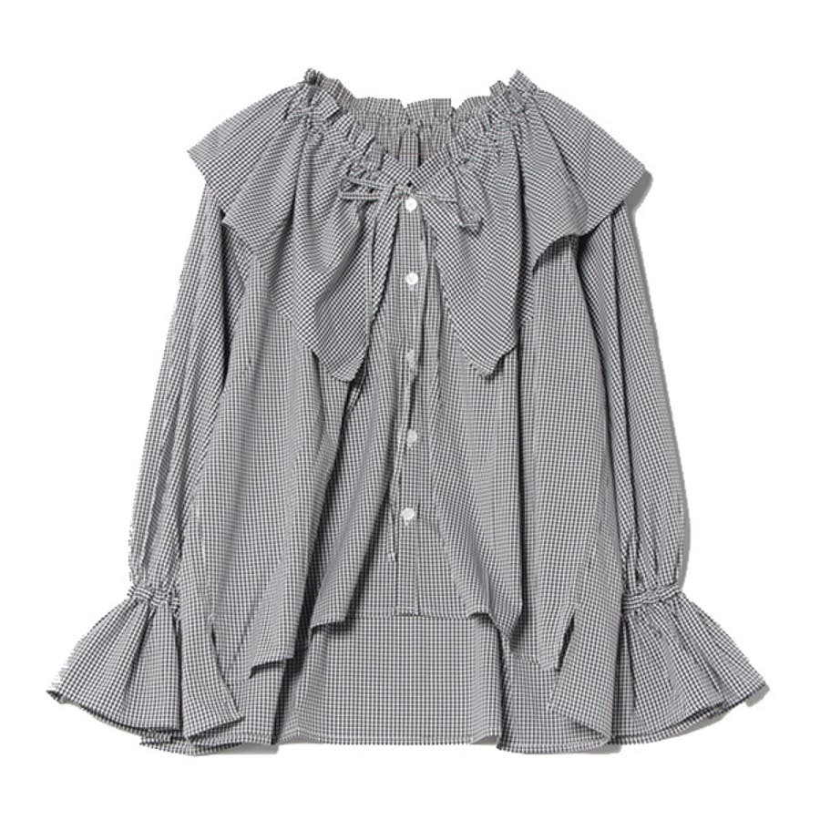 先染めギンガムチェックの素材感が魅力のフリルブラウス。