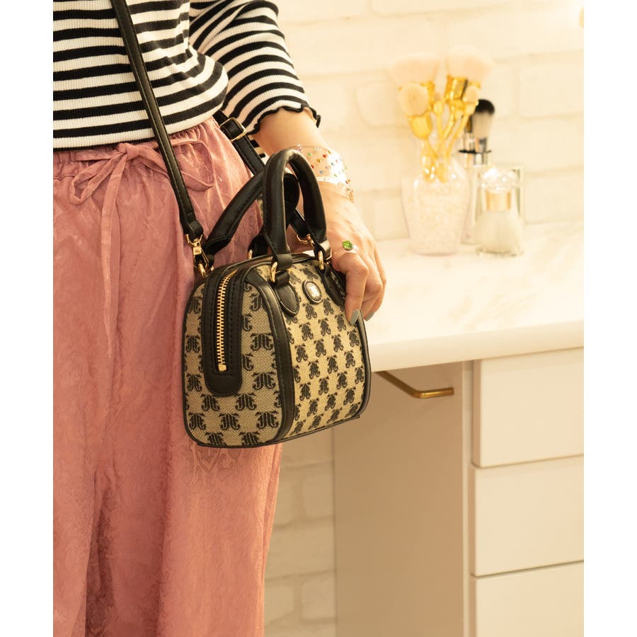 【今季のトレンドは、レトロな面持ちで新しさを感じる総柄!】レトロな雰囲気なのに新鮮なモノグラム超ミニボストンバッグ!オリジナルのJJモノグラムを丁寧に織り上げた高級ジャガード生地はプリントとは違う高見え感があります。