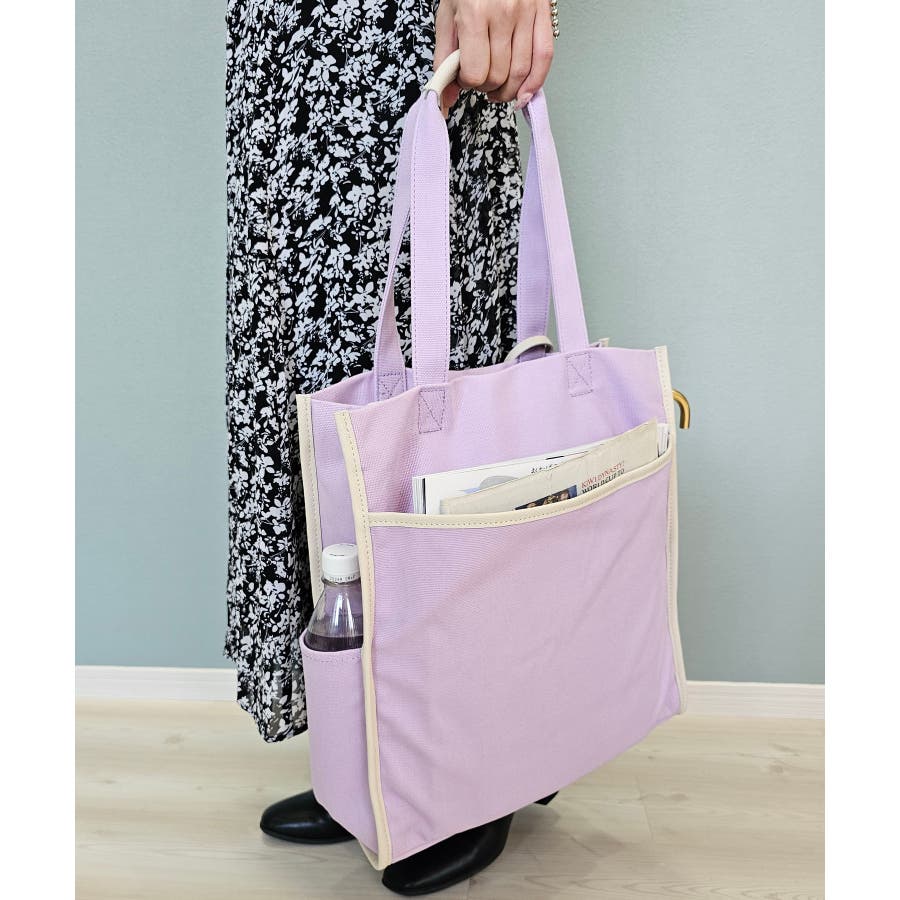 カジュアルになりがちなキャンバス素材も、バッグの持ち手と縁のパイピングデザインで一気に女性らしいバッグに♪