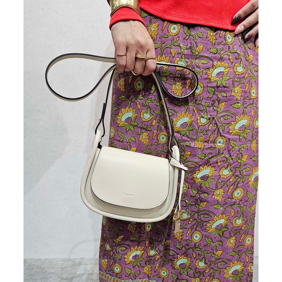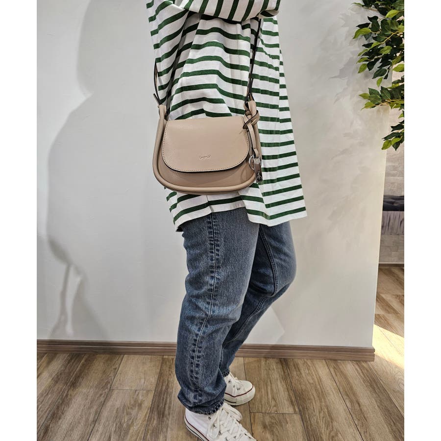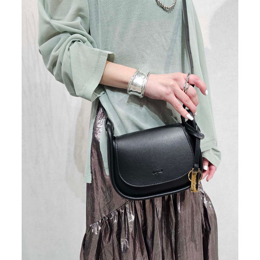 Ungridのキーリングチャーム(鍵を付けて前後側ポケットに収納可能)がアクセントのイマドキミニマルサイズのショルダーバッグです。