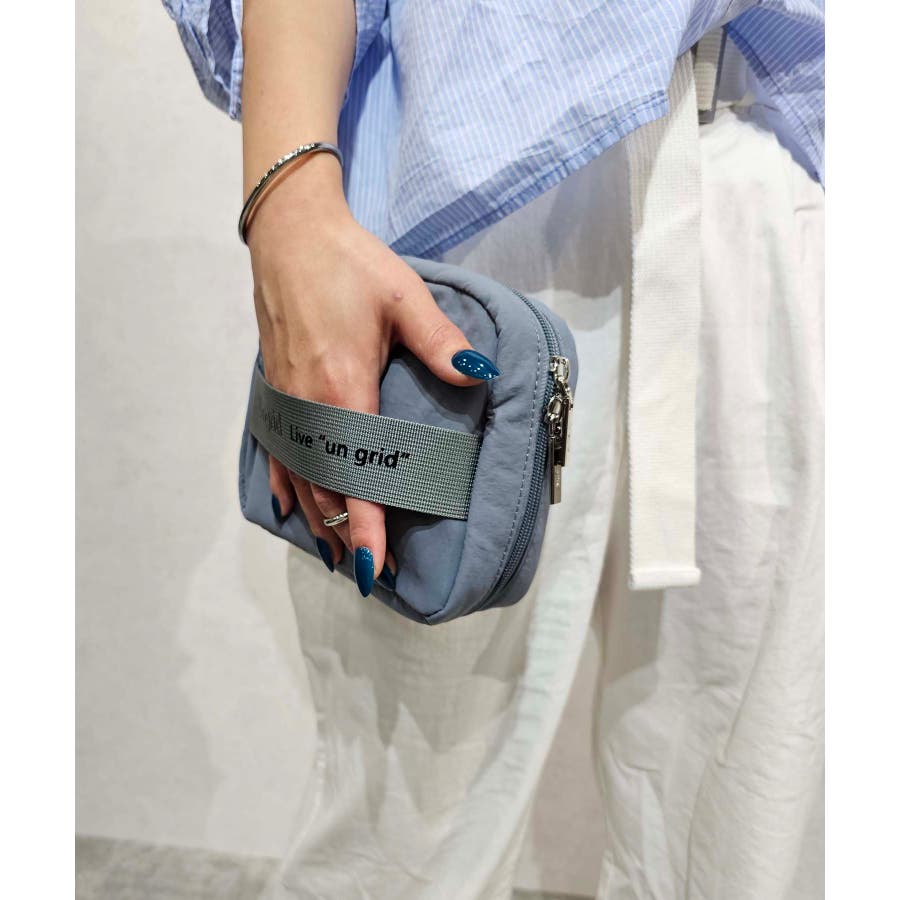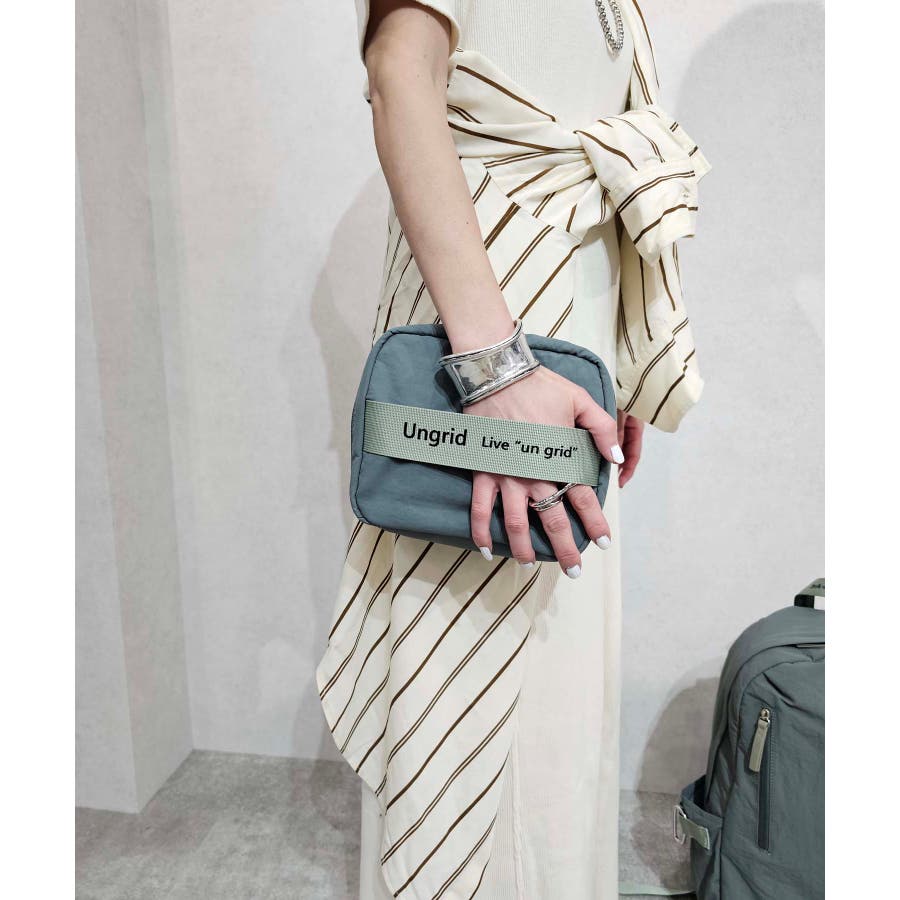 ungridのロゴテープがポイントの撥水多機能コスメポーチです。