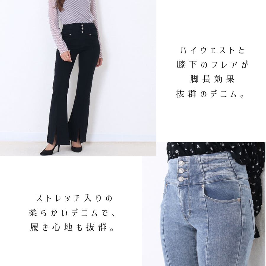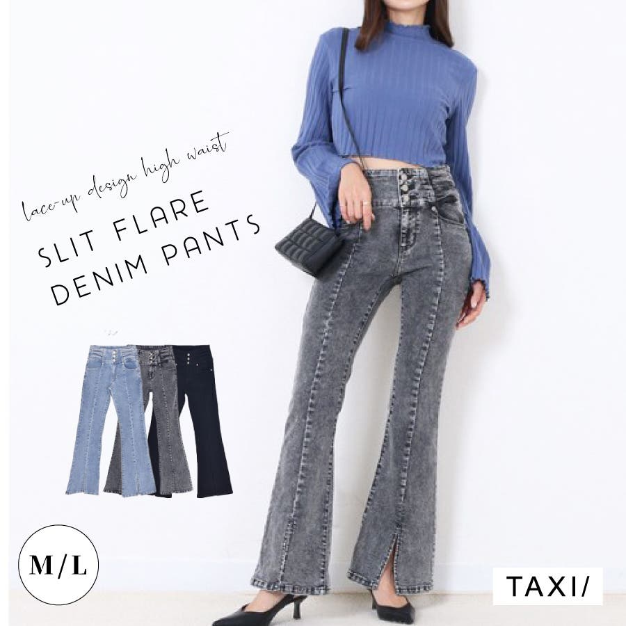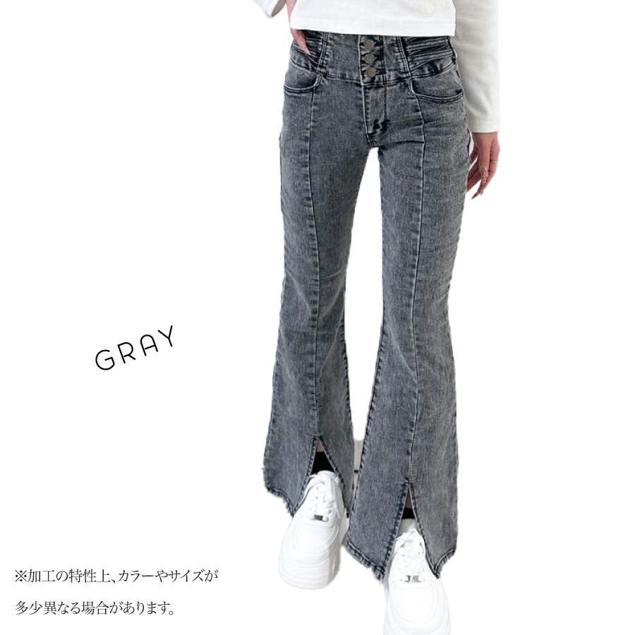 レースアップ15個釦ハイウエストセンタースリットパンツ