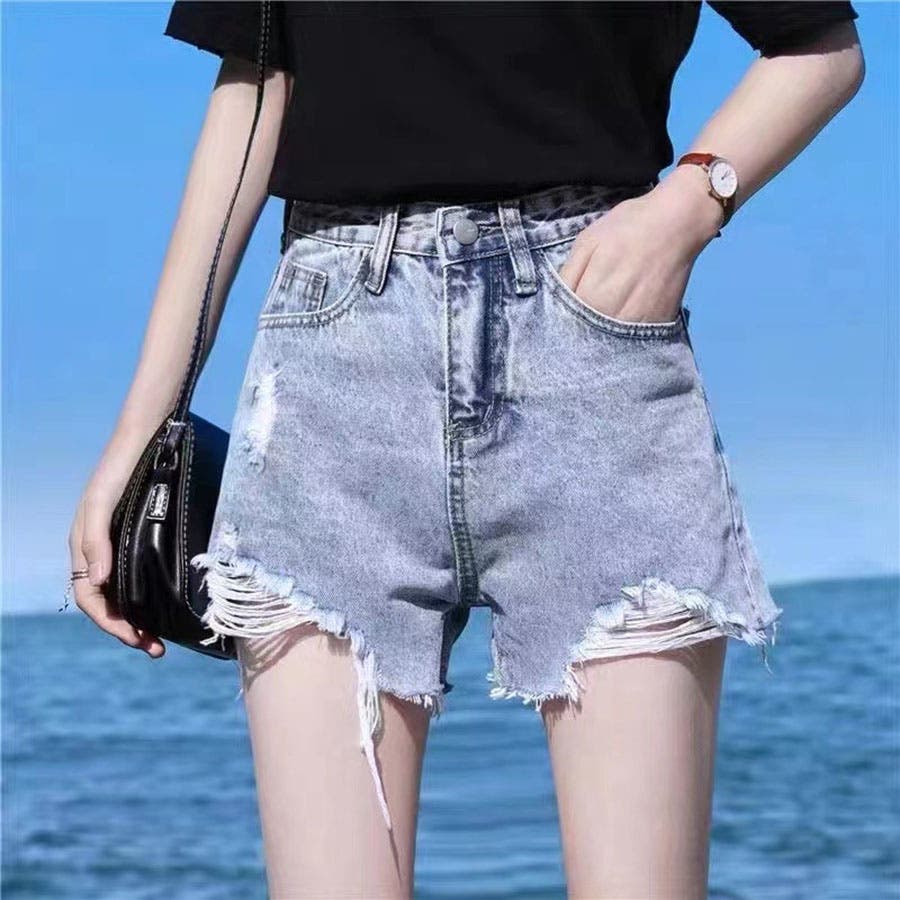 脚長効果ありのダメージデニムショートパンツ