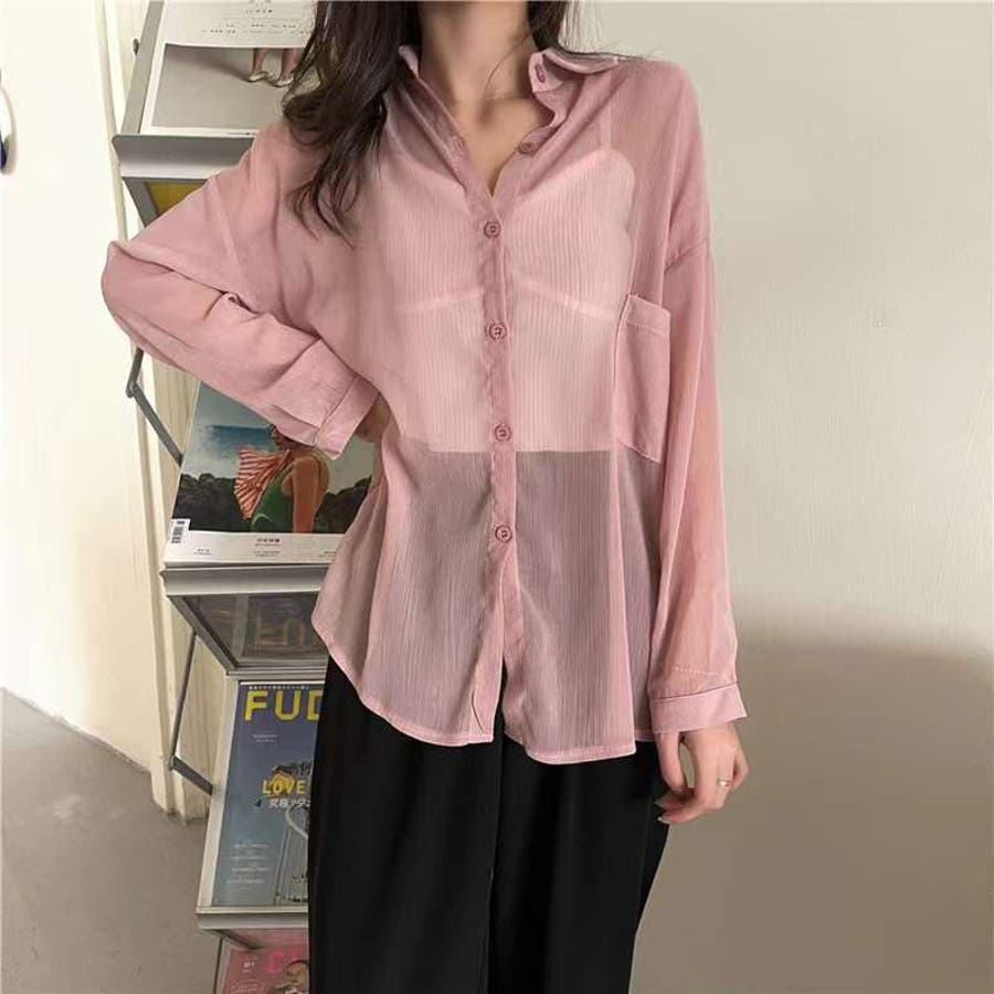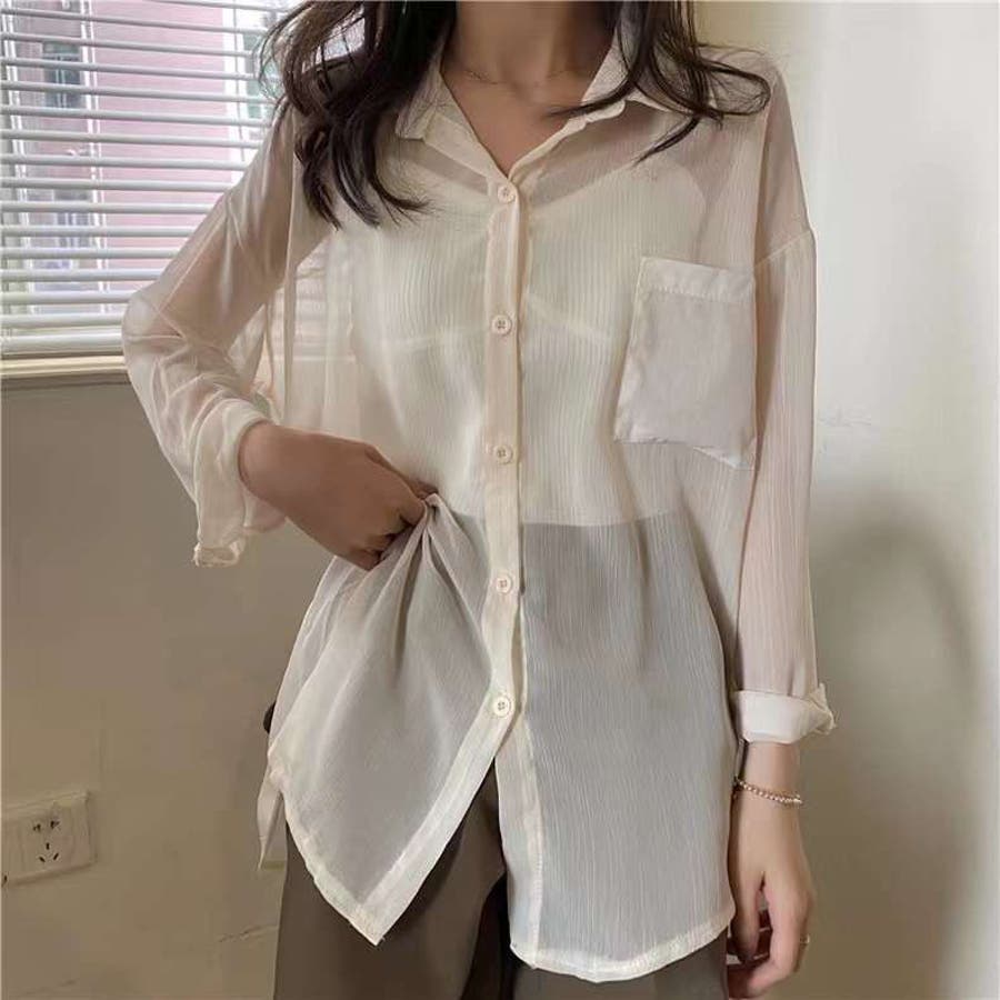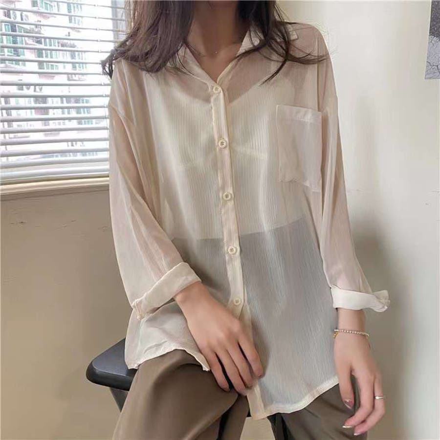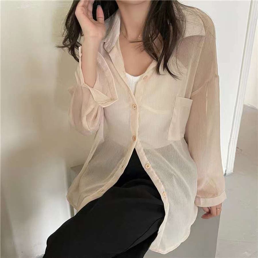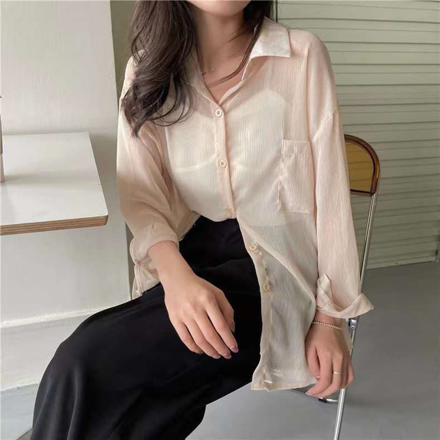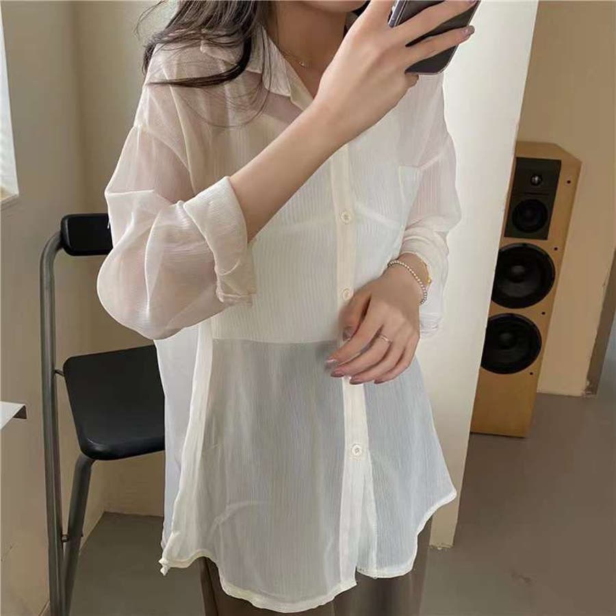韓国ファッション 韓国 プチプラ トップス シャツ 綿シャツ シアーシャツ ライトアウター 羽織り シアーシャツ