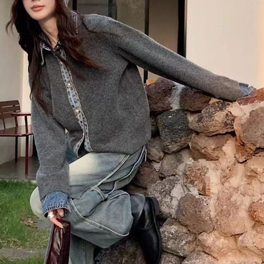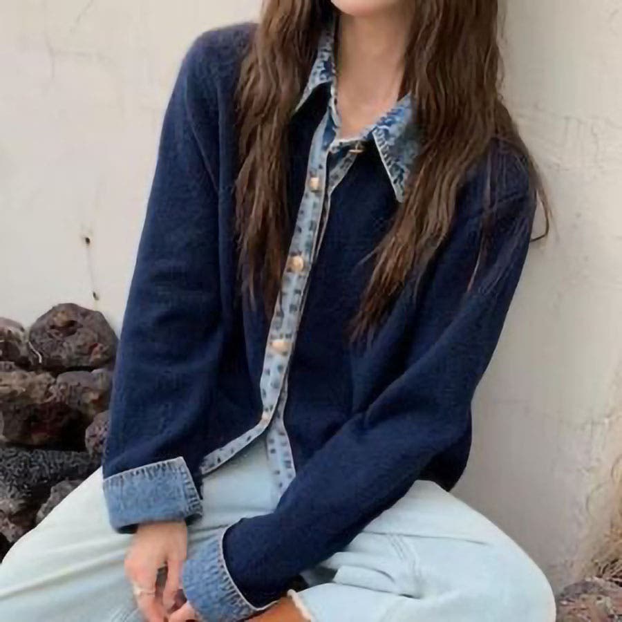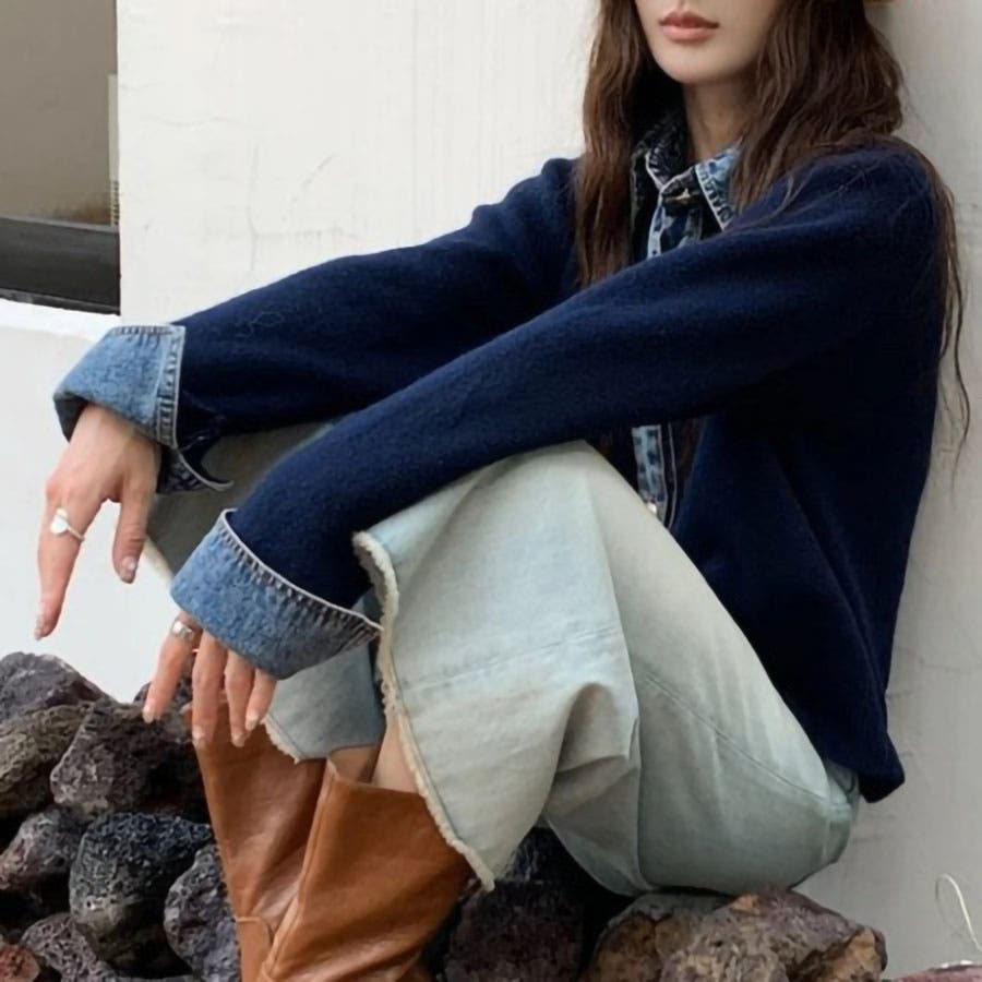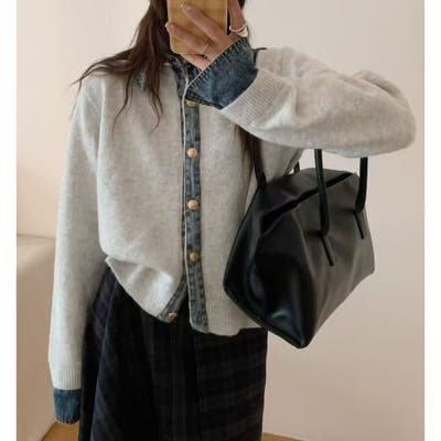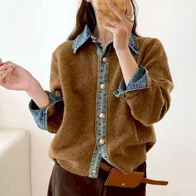 デニム切替カーディガン