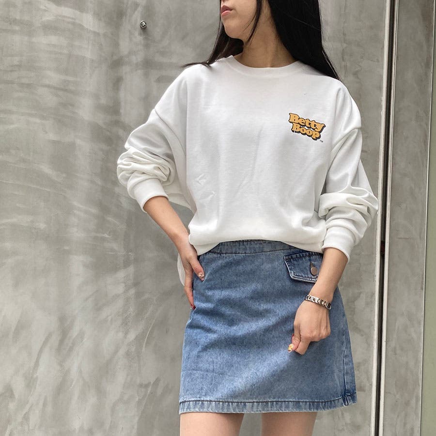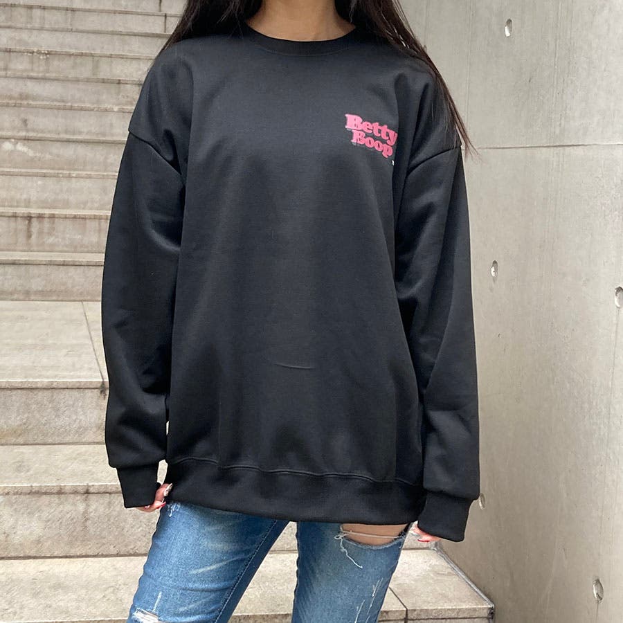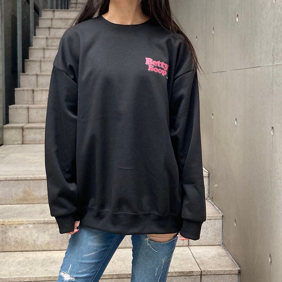 韓国ファッション 韓国 プチプラ トップス カットソー プルオーバー ロンT ベティ ベティ・ブープ ベティちゃん BETTY BOOP バックプリント オーバーサイズ