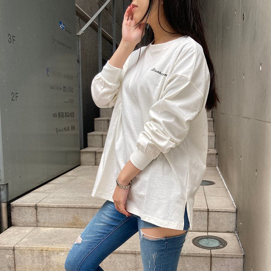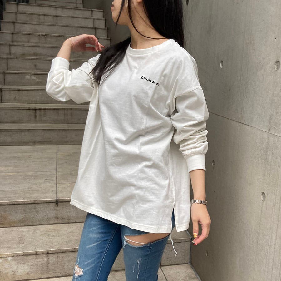 BREAKCREAMプリントスリット入りロンT