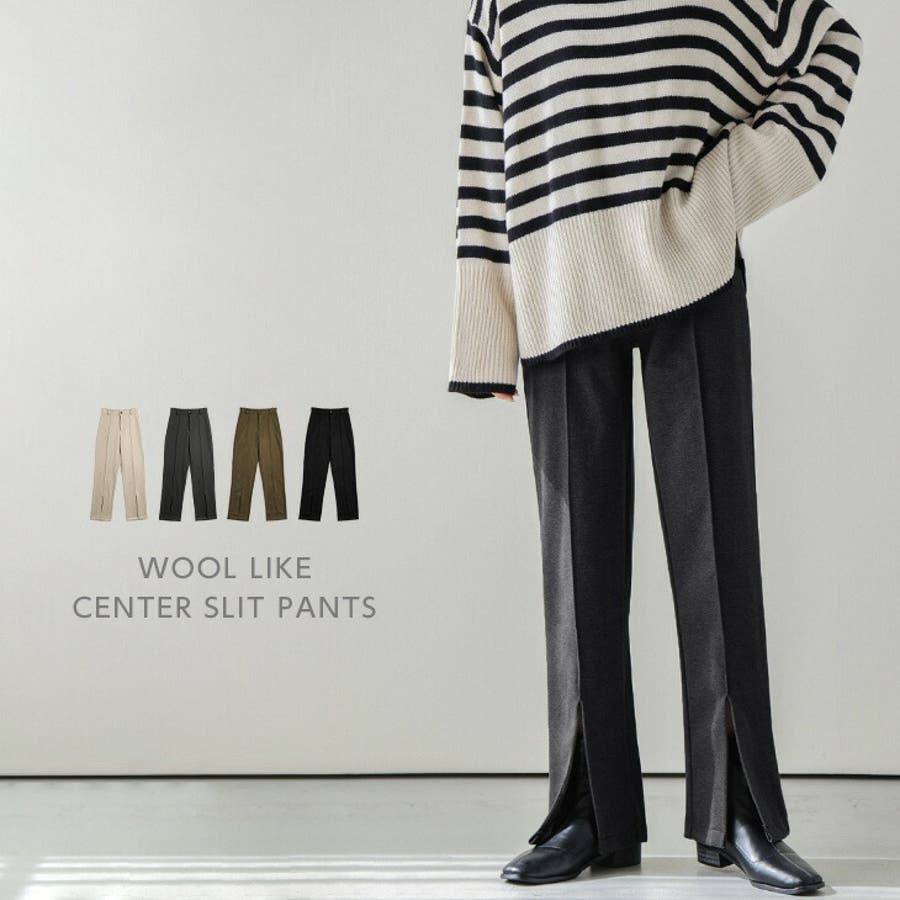ウールライク センタースリット入りパンツ ボトムス