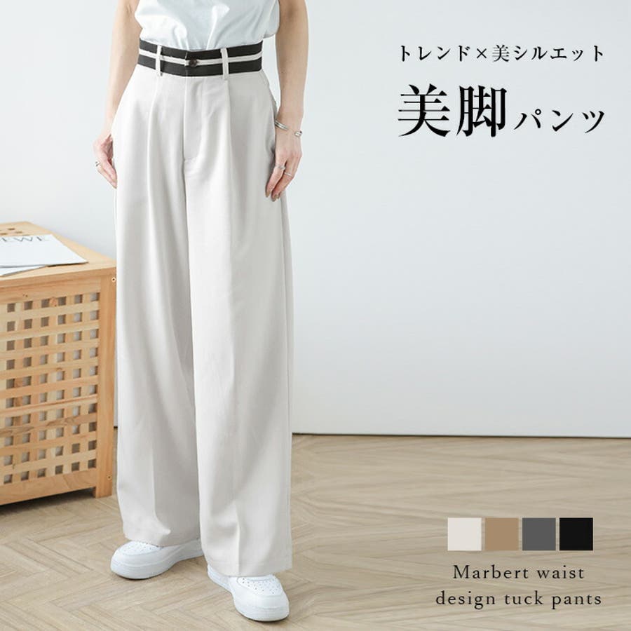 美脚ワイドパンツ タックパンツ ボトムス