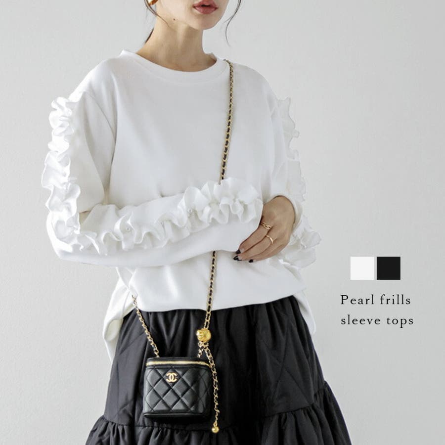 フリルスリーブプルオーバー パール 長袖