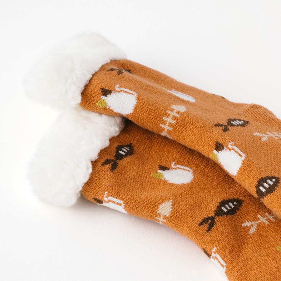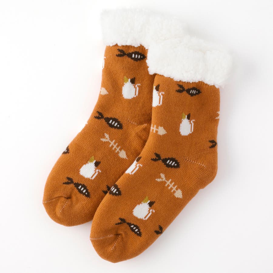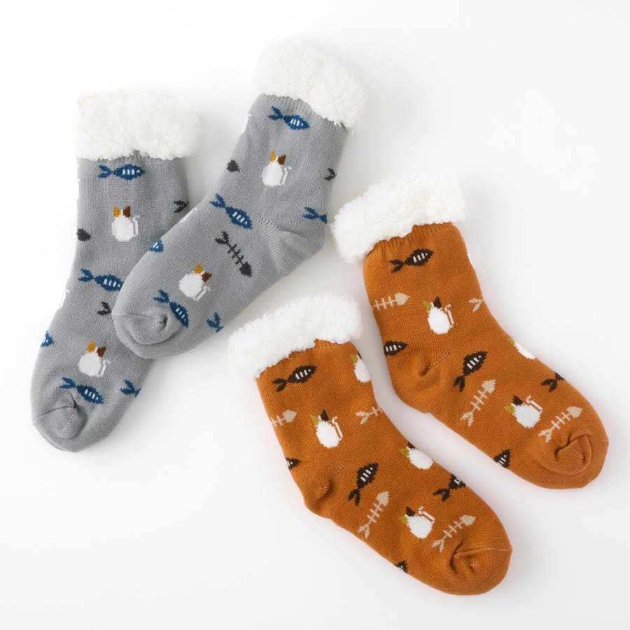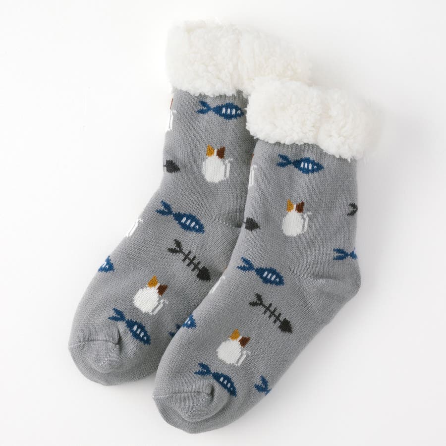 【にゃんこ堂】裏ボア猫と魚柄ルームソックス