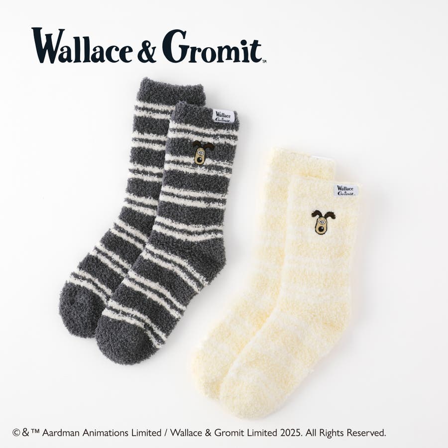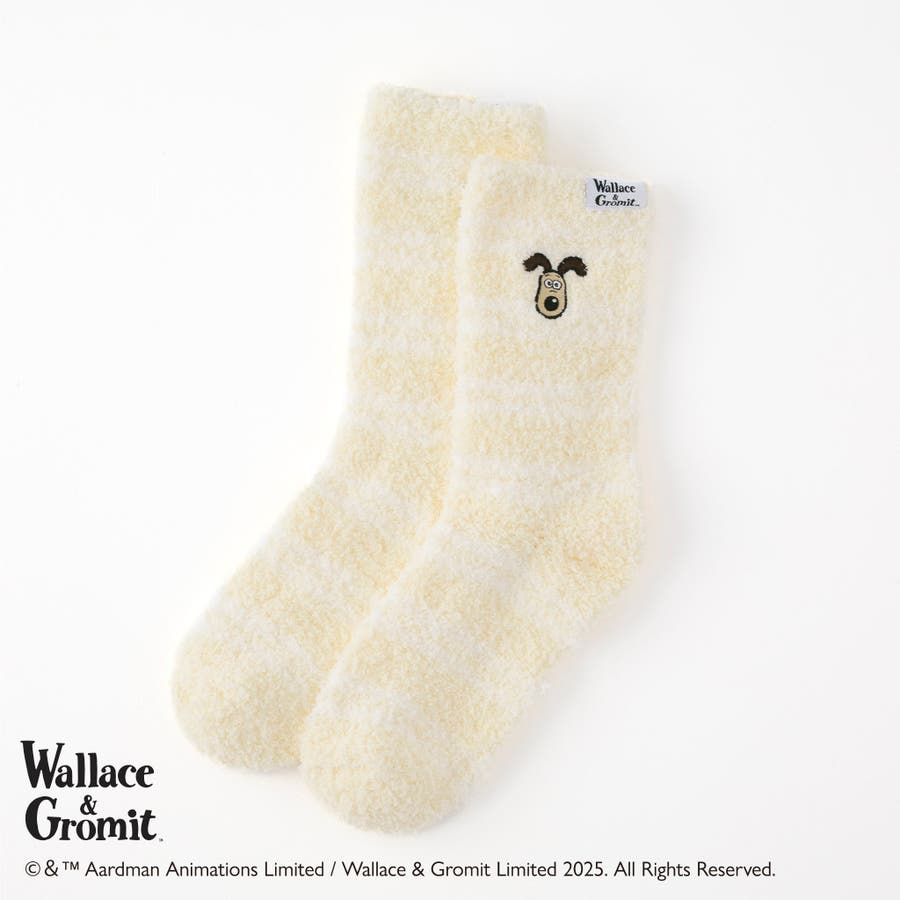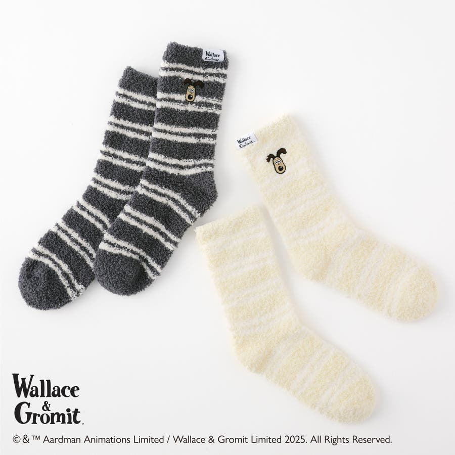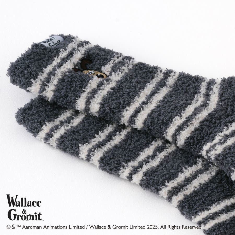Wallace&gromit ウォレス グルミット キャラクター キャラソックス レディース 婦人 靴下 ソックス 犬 ボーダー しましま もこもこ ふわふわ ボア あたたかい あったか 起毛 寒さ対策 冷え 冷え性 冬 ルームソックス おうち ホームソックス かわいい おそろい 刺繍 ギフト プレゼント クリスマス 部屋着 秋 冬 10代 20代 30代 40代 50代 60代