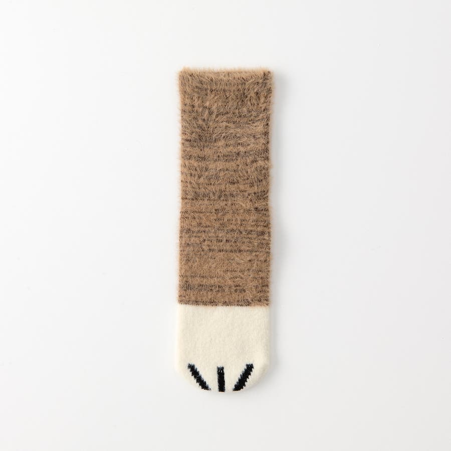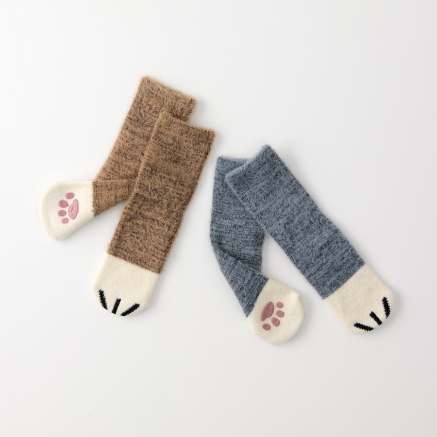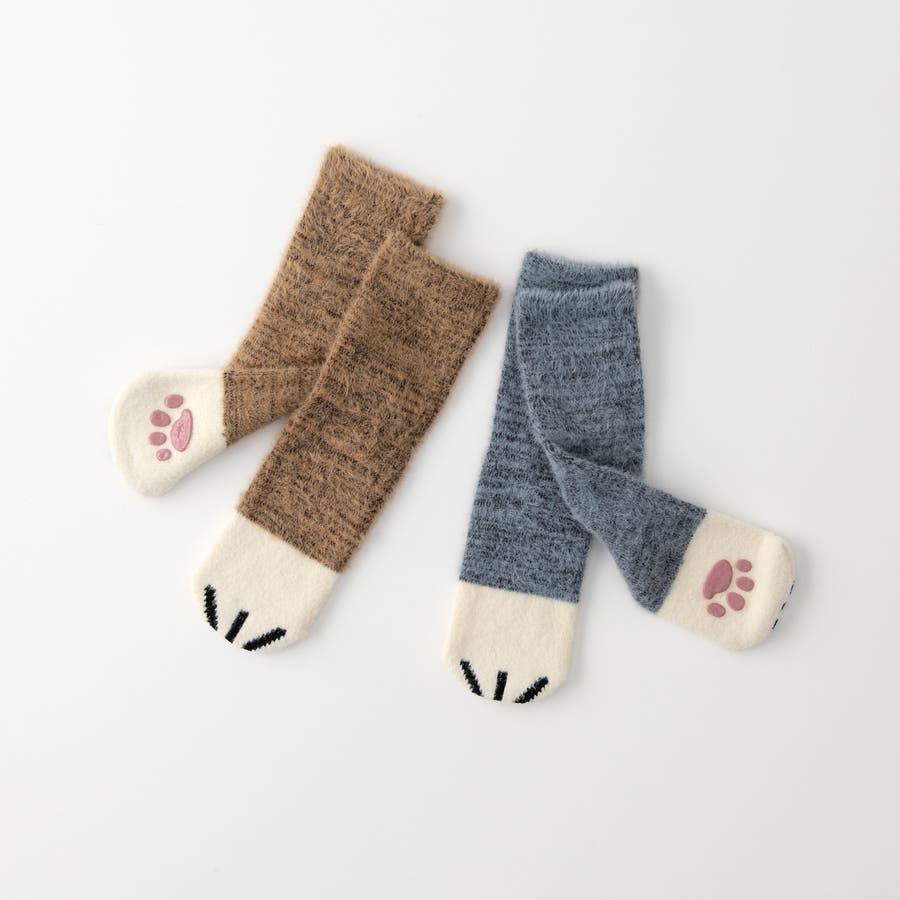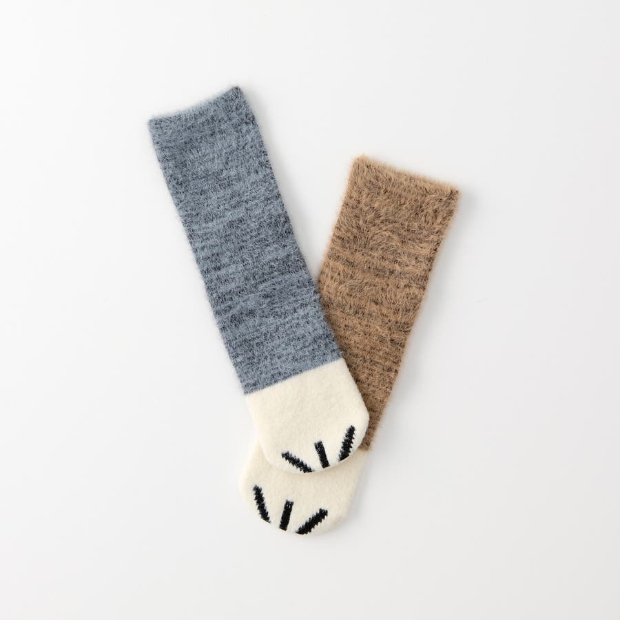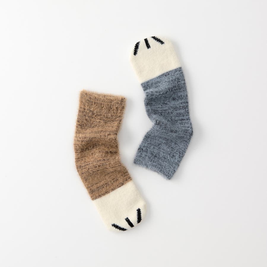 毛足の長いシャギー素材で、まるで本物の猫のようなふわふわ感のルームソックス。