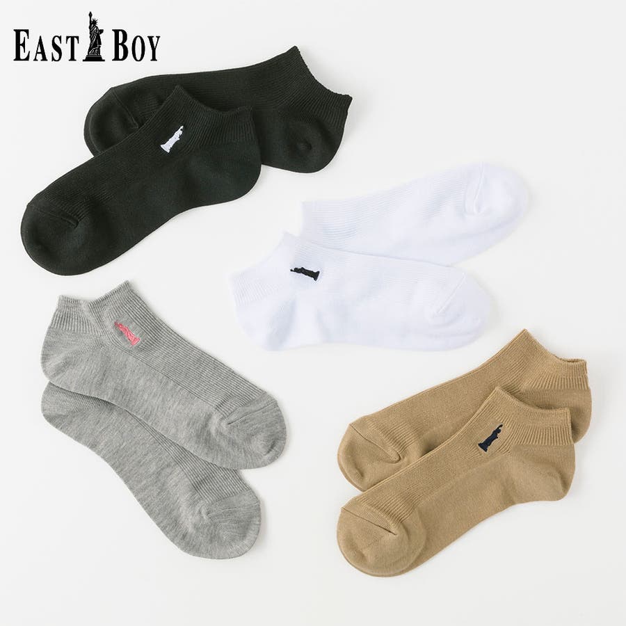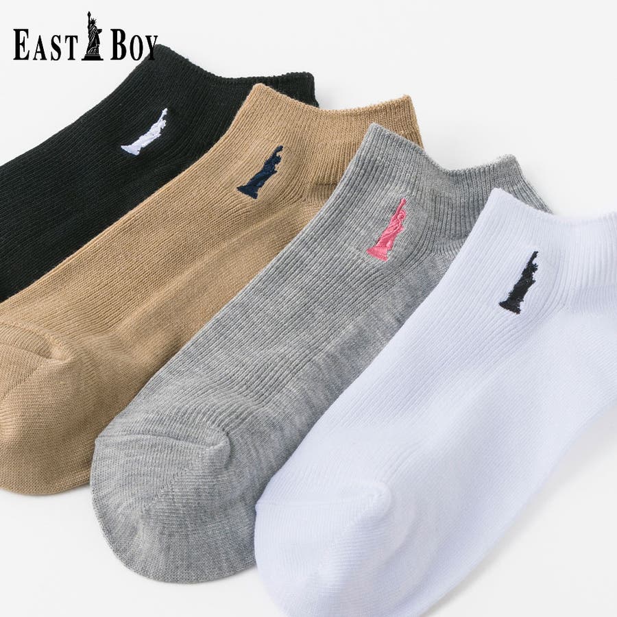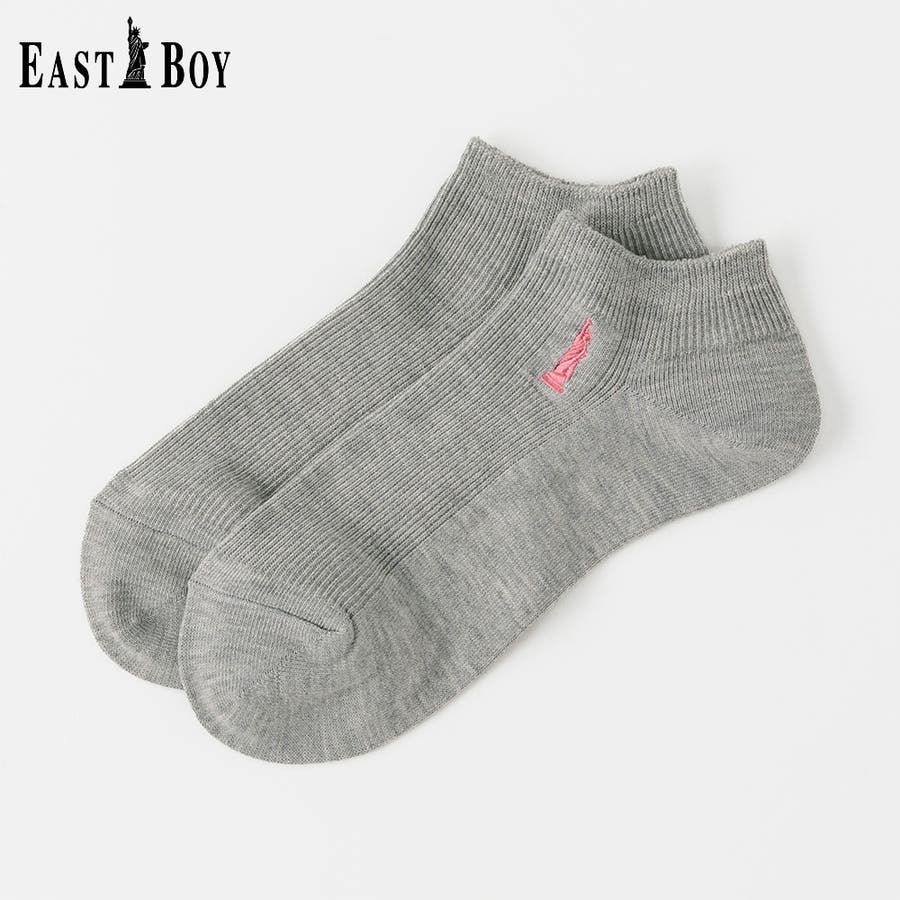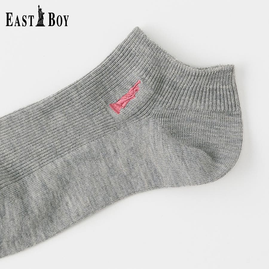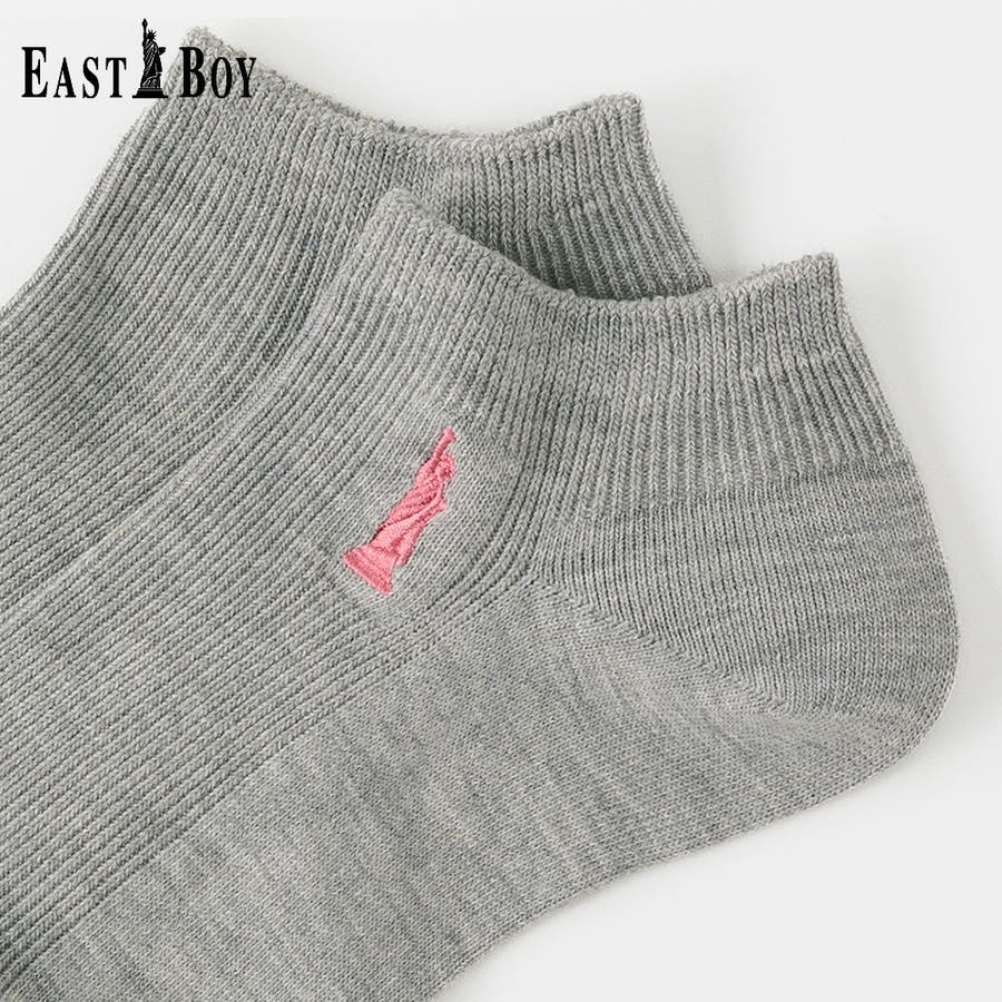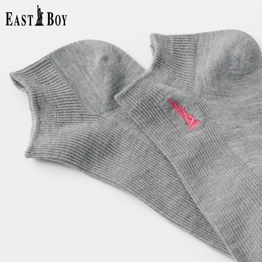 「自由の女神」のワンポイントをモチーフとしたティーンに人気のブランド EASTBOY。EASTBOYのクラシックなイメージを落とし込んだベーシックデザインはシーンを選ばず着用することができます。ティーンから、学生の頃に着用していたママ世代まで、幅広い年代におすすめです。細リブの編地とワンポイント刺繍がキレイ目な印象のスニーカー丈ソックスです。