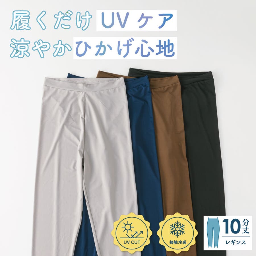 レギンス スパッツ レディース 接触冷間 10分丈 UVカット ブラウン ライトグレー クロ ネイビー 春 夏 暑さ対策 冷感グッズ 冷却グッズ 日差し対策