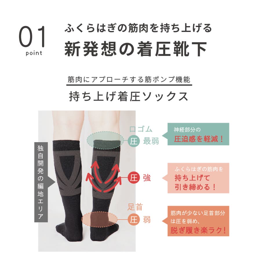 ふくらはぎの筋肉を持ち上げる「新発想の着圧靴下」
