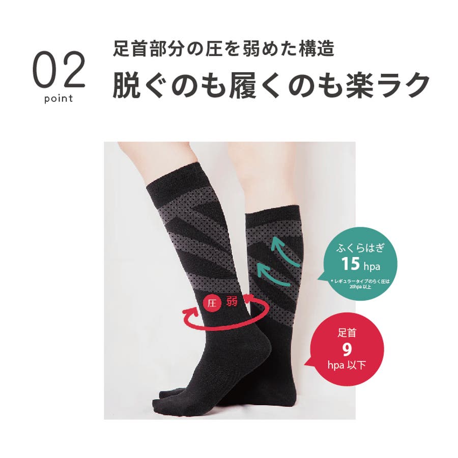 働き者の足や産前・産後のつらい足に、脱ぐのも履くのもラクなスッキリ着圧ソックス。