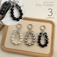 キーホルダー キーリング バッグチャーム パール調ビーズ リボン シンプル キーチャーム...