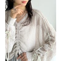【mily bilet】ルーズな愛らしさで魅了する。透かし編みギャザー仕様リボンプルオーバー(長袖)