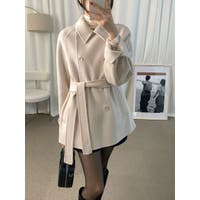 ベルト付きダブルブレストコート