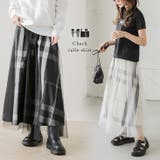 チュールスカート チェック柄 ロング丈 ボトムス 総ゴム レディース おすすめ おしゃ.. ¥3,703