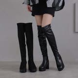 ラウンドトゥ厚底ストレッチニーハイブーツ ¥7,180