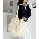 【mily bilet】即華やか見え。ラインストーン付きチュールフリルドロスト巾着バッグ ¥2,998