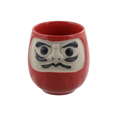 紅白カラーとだるまの表情がほっこり和む、湯のみです。