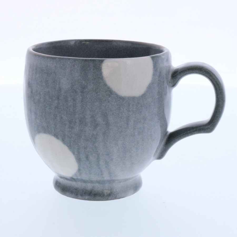 素朴な水玉模様が心をほっと和ませてくれる、温かみのあるかわいいマグカップです。
