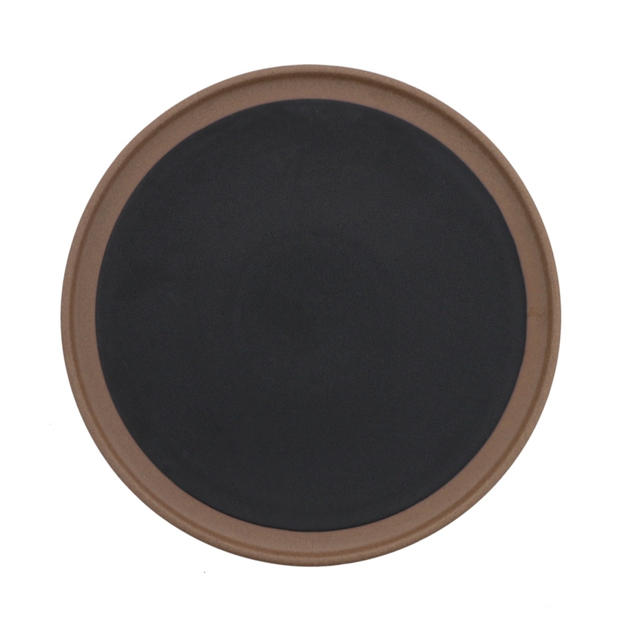土の色味や風合いを残すように釉薬がかけられた、自然素材の温かみがあるフラットタイプのラウンドプレートです。
