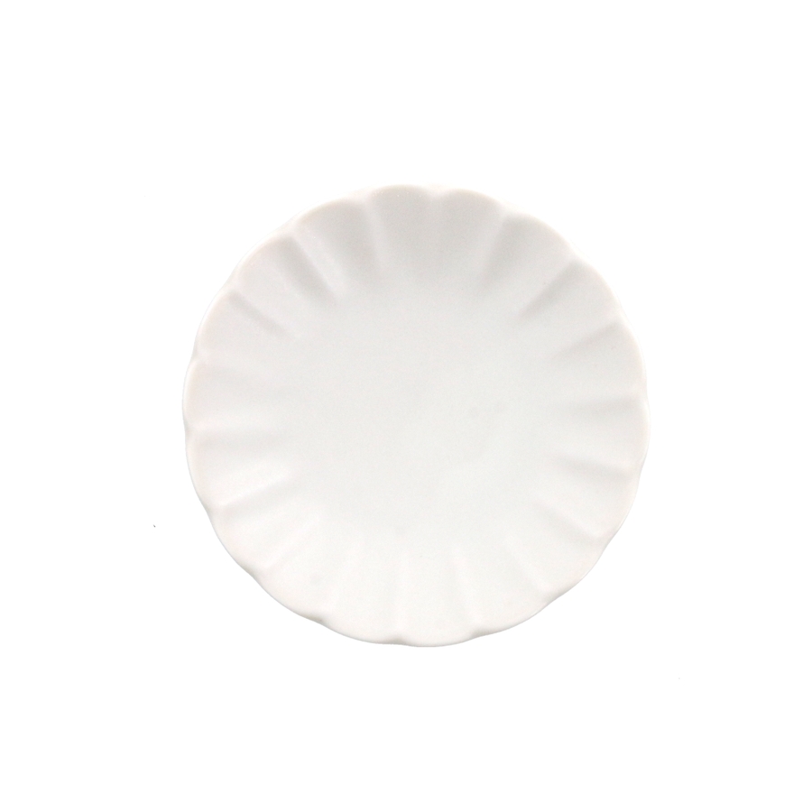 渕にデザインが施された和風のお皿はモダンな雰囲気。直径約10cmでお醤油皿に最適サイズです。和風すぎないデザインは、ナッツやチョコレートなどをちょこっと乗せてお酒の時間に使うと、大人の時間をシックに演出出来そう。