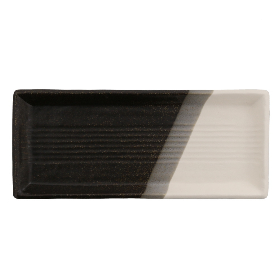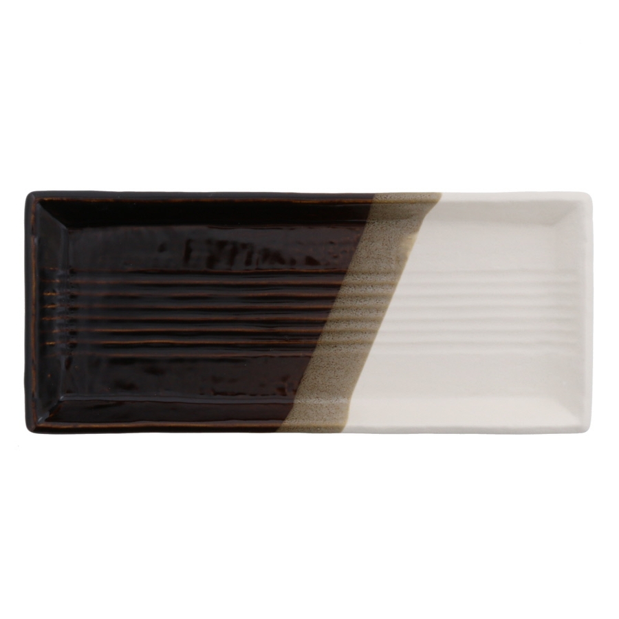 3色に塗り分けられた長角皿は、大人な雰囲気漂う配色。