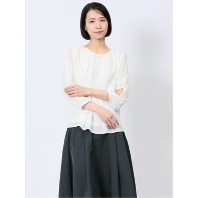 幅広い年代の方に着ていただけるベーシックなシルエットです。タック入りでふんわりとした印象に仕上げています。ボトムにインしなくてもバランス良く着こなせます。