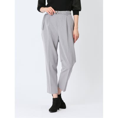 レーヨン混ストレッチ ベルト付きテーパードパンツ