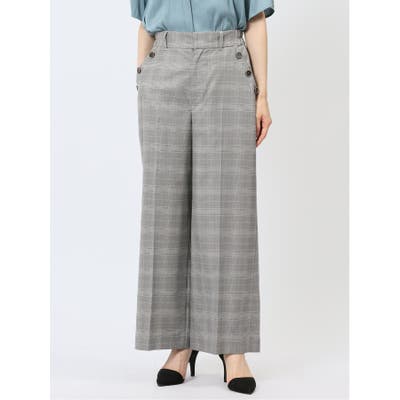 ストレッチウォッシャブル ボタン付き グレンチェック柄ワイドパンツ(セットアップ可能)