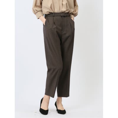 バックル付きの細ベルトが付属したワンタックのテーパードパンツです。センタープレスでキチンと感のある印象に仕上げています。ウエストはバックシャーリングで着用ストレスを軽減。ポケット付きなので利便性にも優れています。