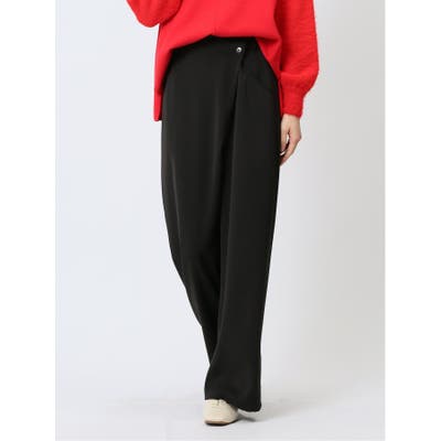 キチンと感のある印象に仕上げた、ノータックのワイドパンツです。アシンメトリーなラップデザインでフォルムに表情をプラスして、腰回りのゆとりも確保しています。ボタンでウエストのサイズを2段階で調節可能。ウエストはバックシャーリングで着用ストレスを軽減しています。