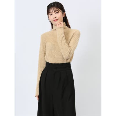 インナー使いにぴったりな長袖のプルオーバーです。首回りを包み込むハイネックとふわふわとしたシャギー素材で、華やかな雰囲気に仕上げています。