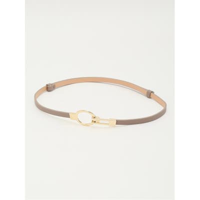 エレガントな雰囲気のナローベルトです。ゴールドの金具使いが高級感を演出してくれます。リング型のバックルは、着脱がスムーズなフック式を採用しています。帯の背後部分が二重になっており、左右にスライドさせることでサイズを自由に調整できます。
