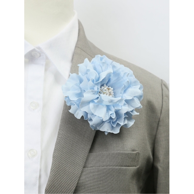 ■セレモニーやパーティーなど、フォーマルシーンのスーツスタイルに欠かせないコサージュです。立体感のあるフラワーモチーフのコサージュに、ビーズをあしらって華やかな雰囲気に仕上げています。コサージュを添えるとそれだけでイメージアップ、胸もとのアクセントとして大活躍してくれます。
