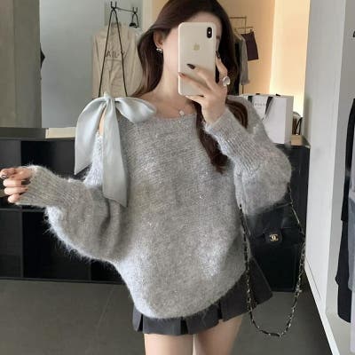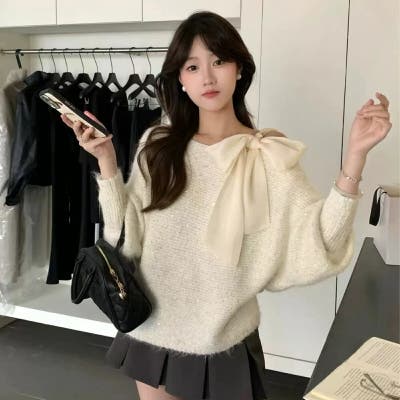 | アイテム名 | ビッグリボン シャギーニット トップス レディース ふわふわ 起毛 ニット セーター ボリューム袖 リボンモチーフ ゆったり 秋冬 大人可愛い |