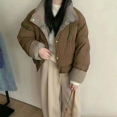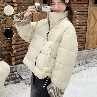 | アイテム名 | チェック柄切り替え 中綿ジャケット レディース ショート丈 ハイネック 2WAY スタンドカラー 軽量 あったか 秋冬 アウター |