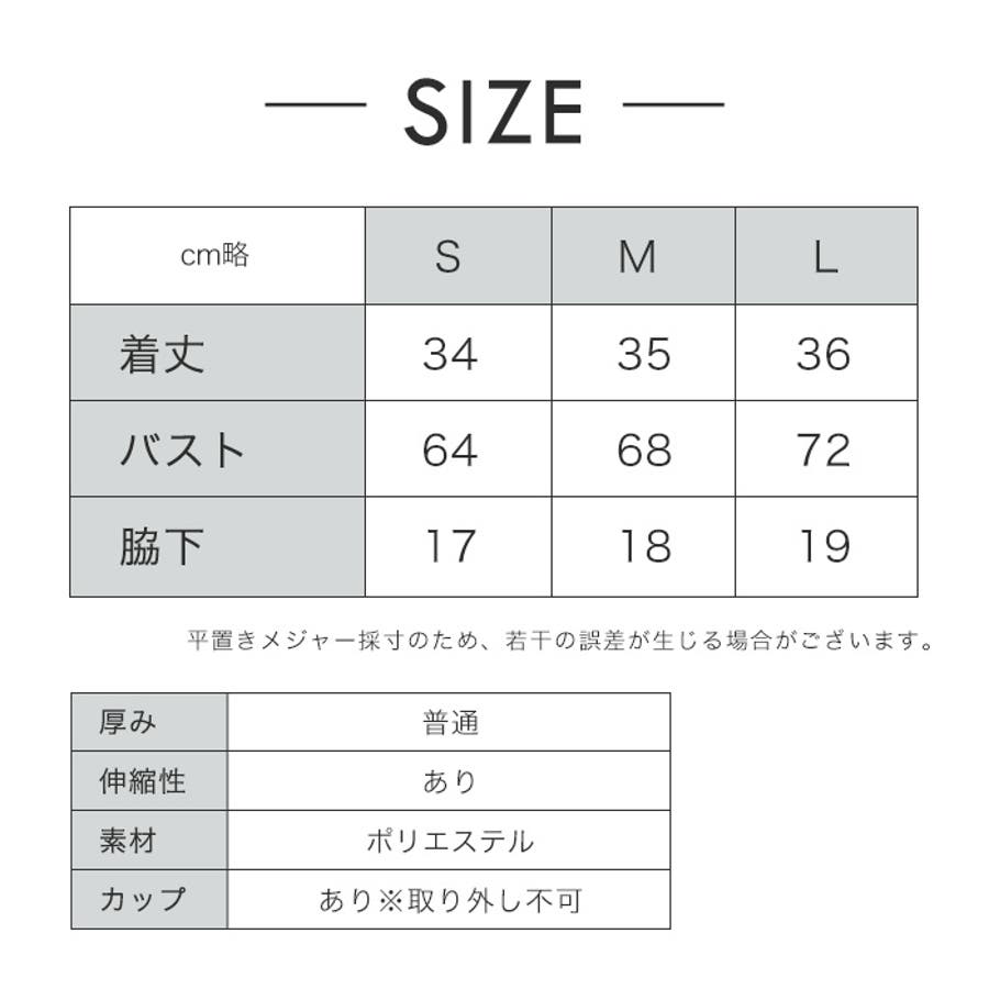 備考 | 伸縮性:あり カップ:あり 透け:なし |